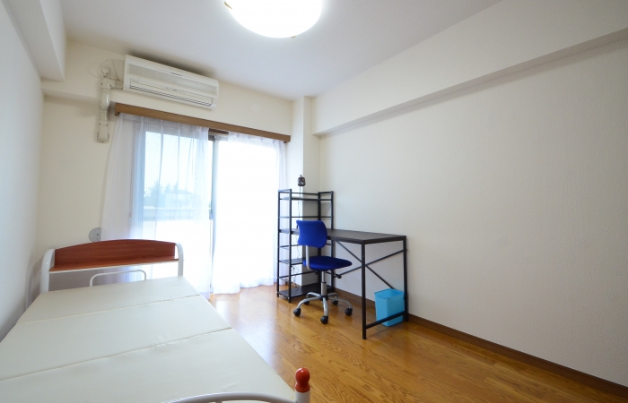 | 個室設備 | ベッド、カーテン、デスク、チェアー、エアコン、収納、寝具。 |