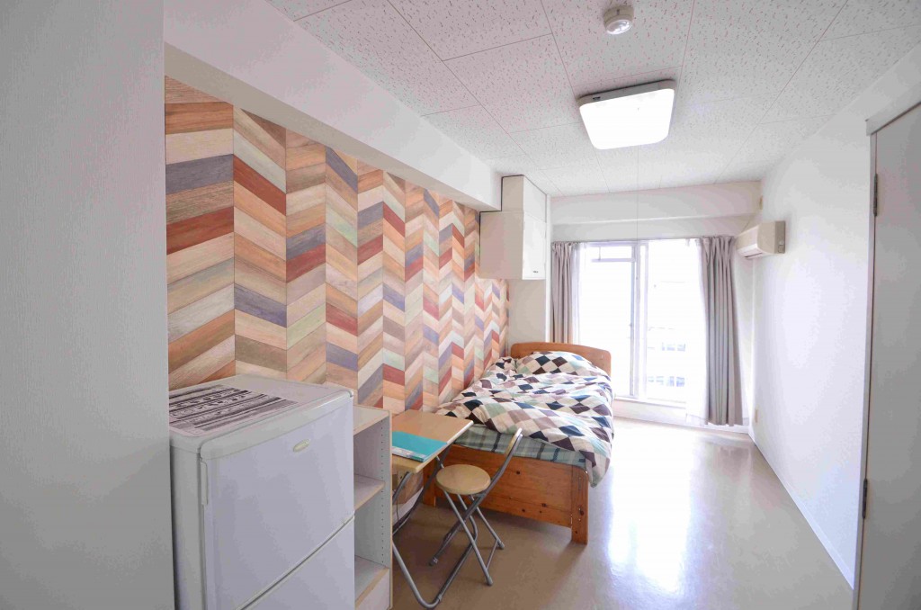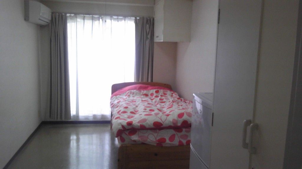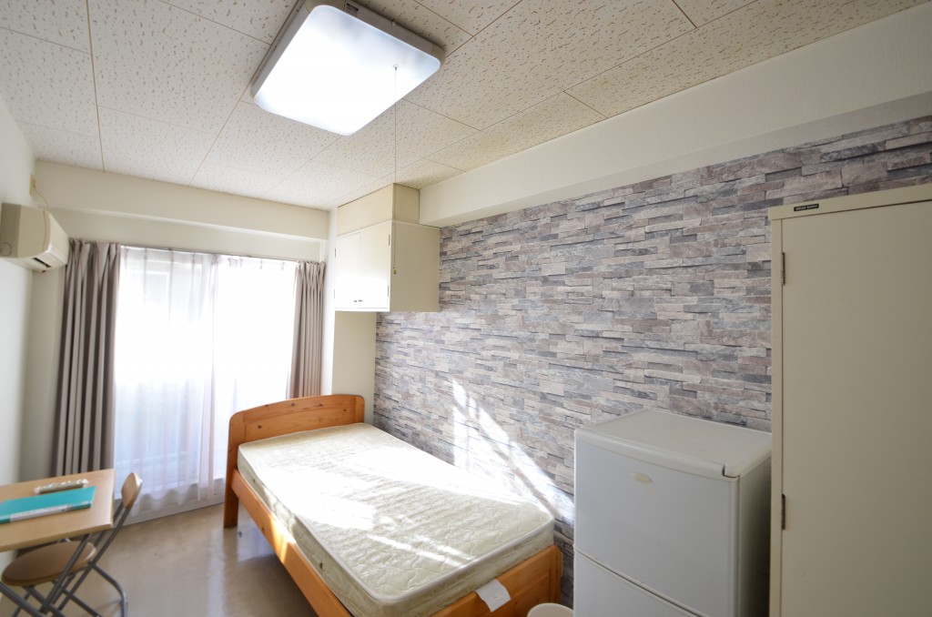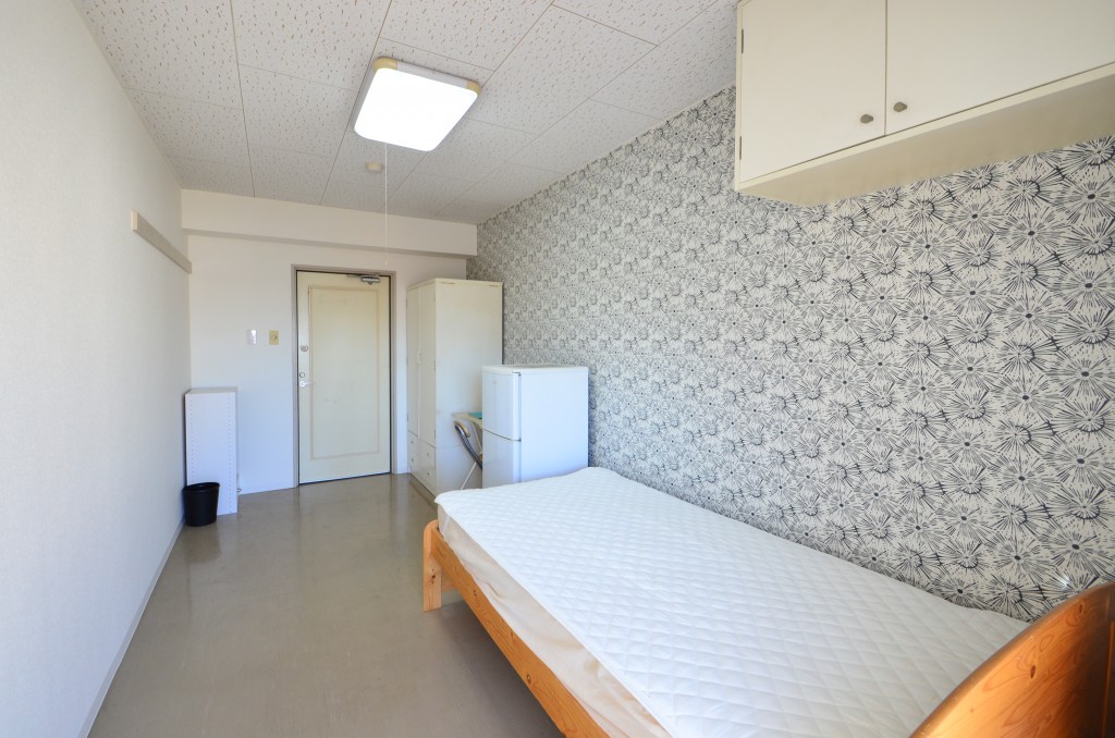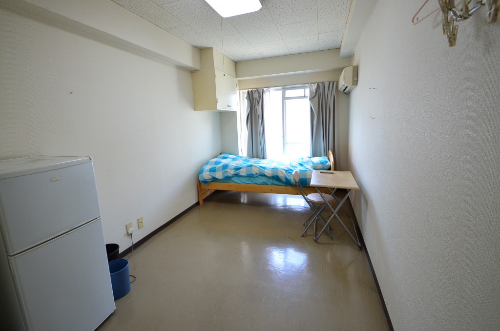 個室設備エアコン、ベッド、冷蔵庫、カーテン、デスク&チェア、収納、バルコニー(インターネット 個室でもご利用いただけます。)
