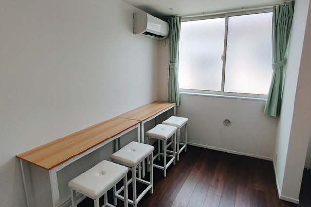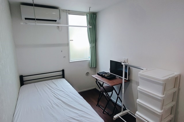 | 個室設備 | エアコン、ベッド、マットレス、机、椅子、冷蔵庫、カーテン、天井付け物干し |