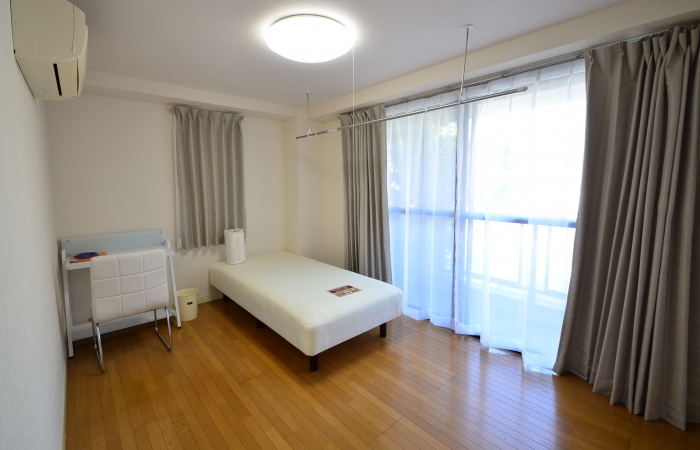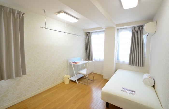 個室設備エアコン、ベッド、デスク、チェア, カーテン